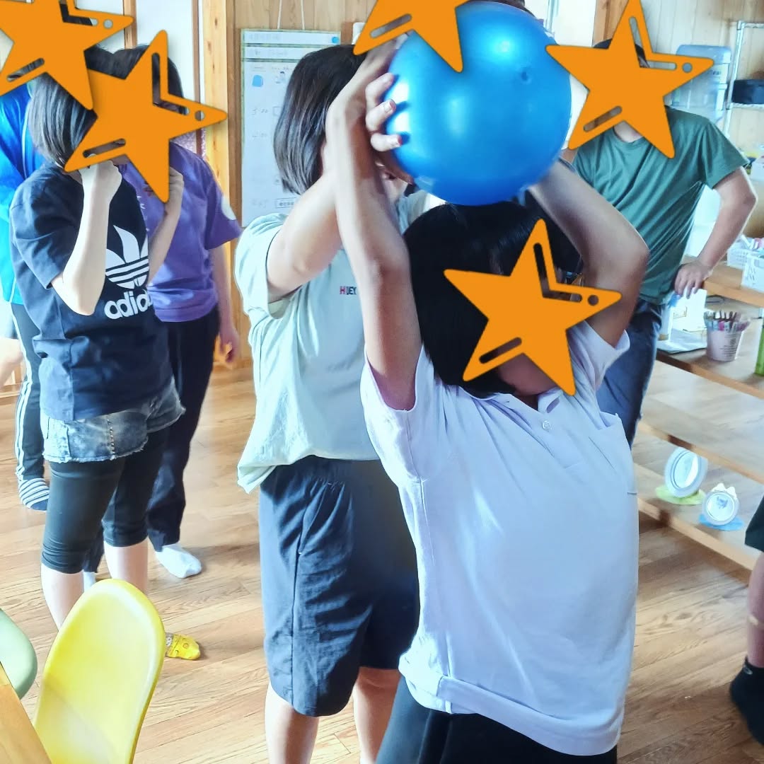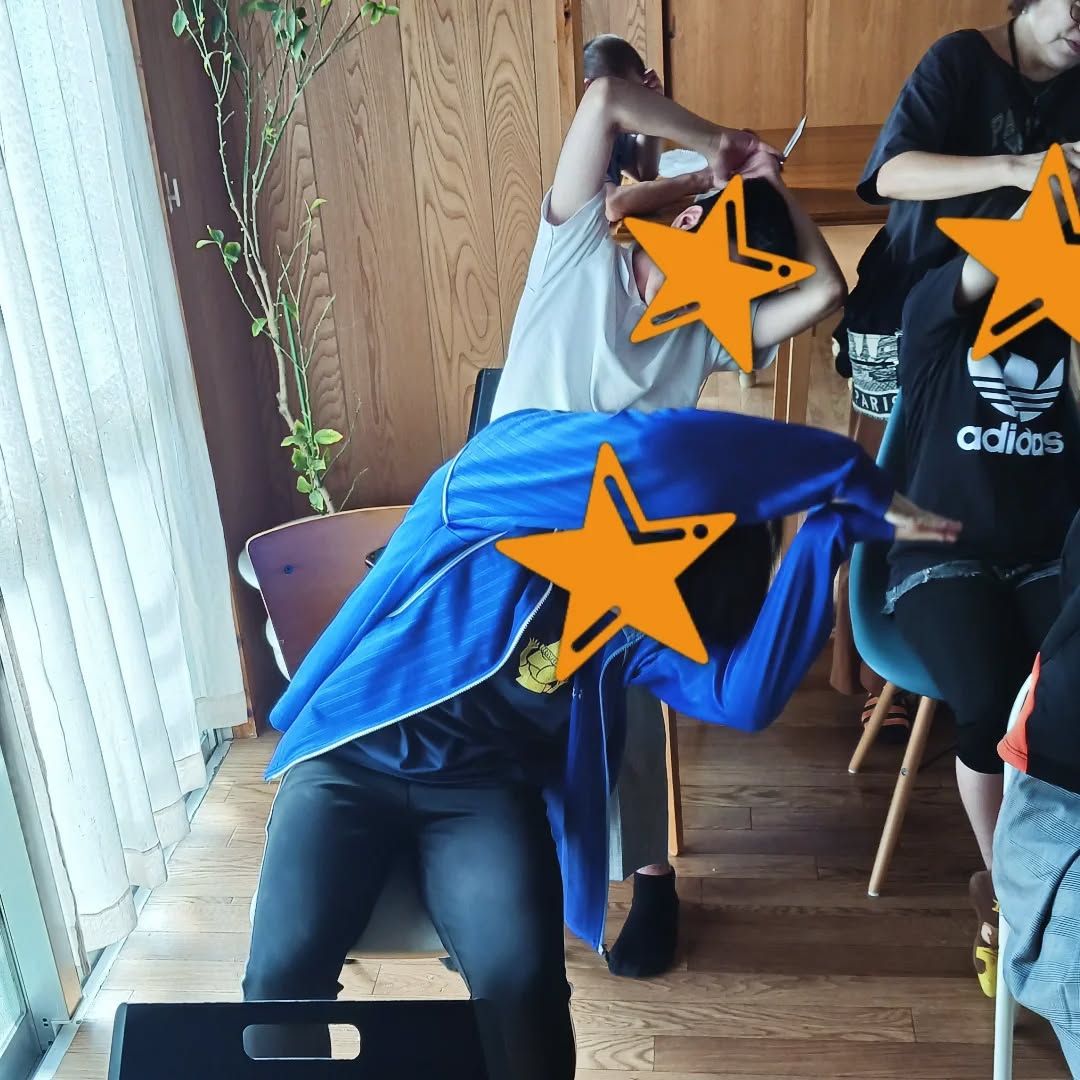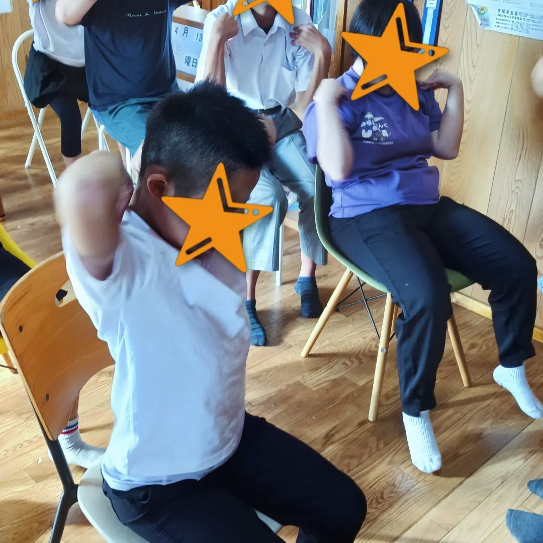 みなさん、職員の動きを見ながら同じように行なうことができています。友達同士、楽しみながらリラックスした様子で取り組めていました✨