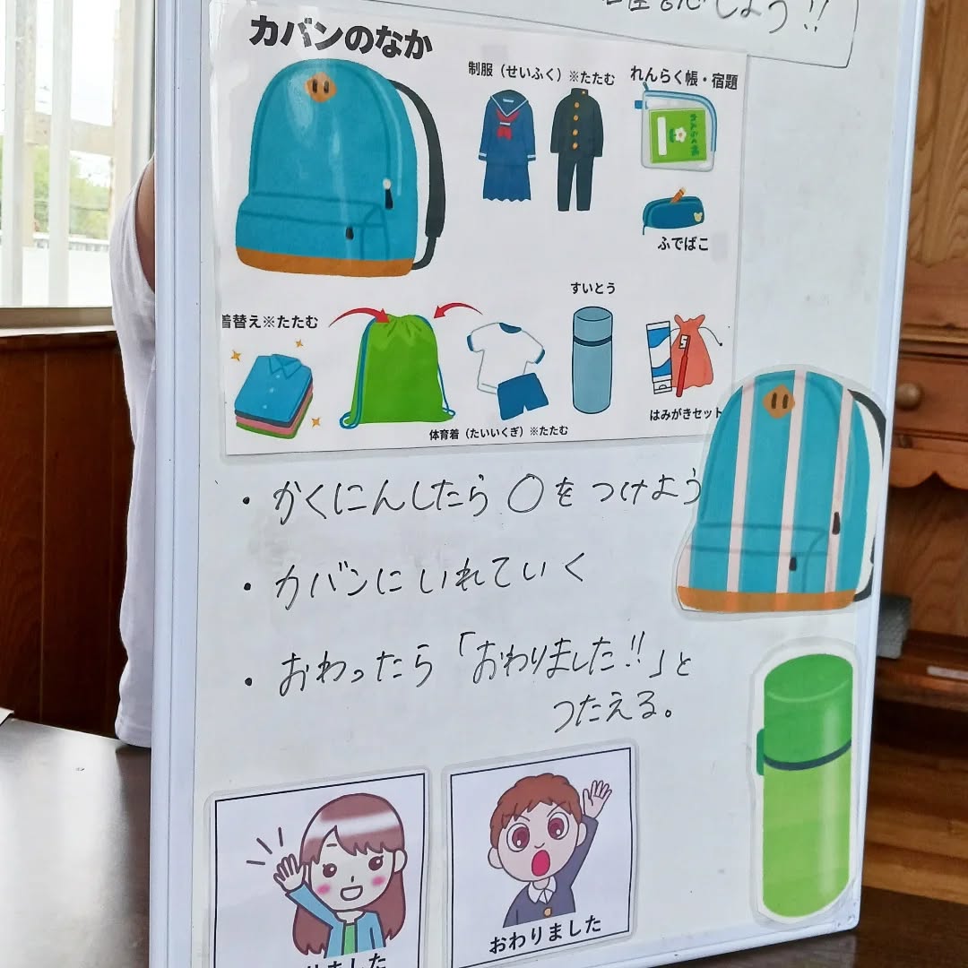 忘れ物を防止したり、自己管理に繋がるよう、普段から自分の持ち物を大切にする意識を育んでいきたいと思います🌺