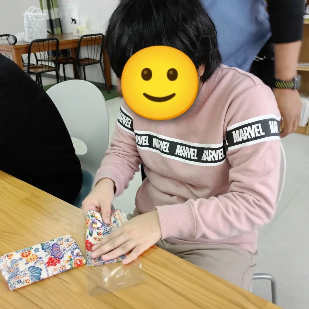 さらに、ハンカチを手アイロンで シワを伸ばし形を整えて丁寧にたたむ練習も行いました🤗