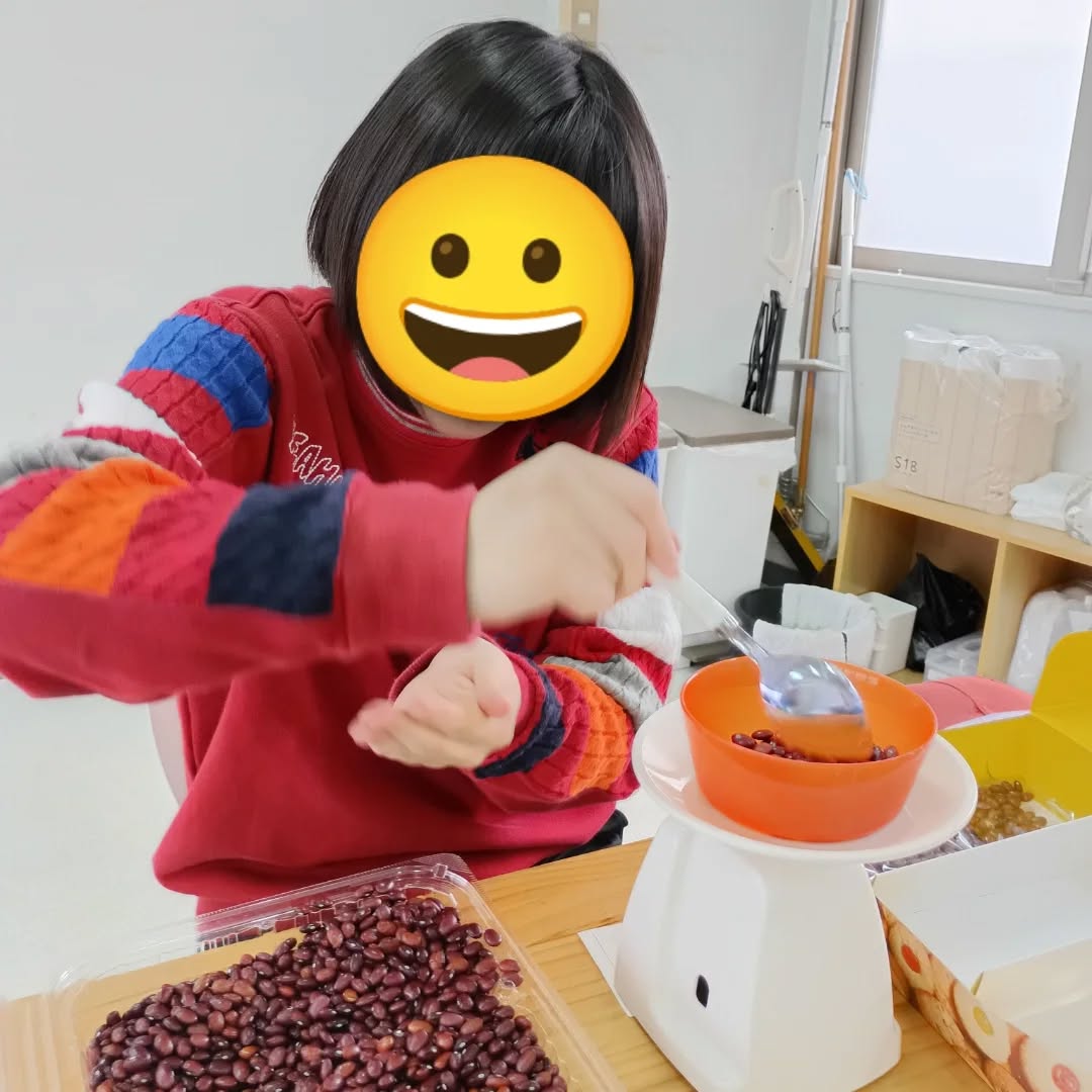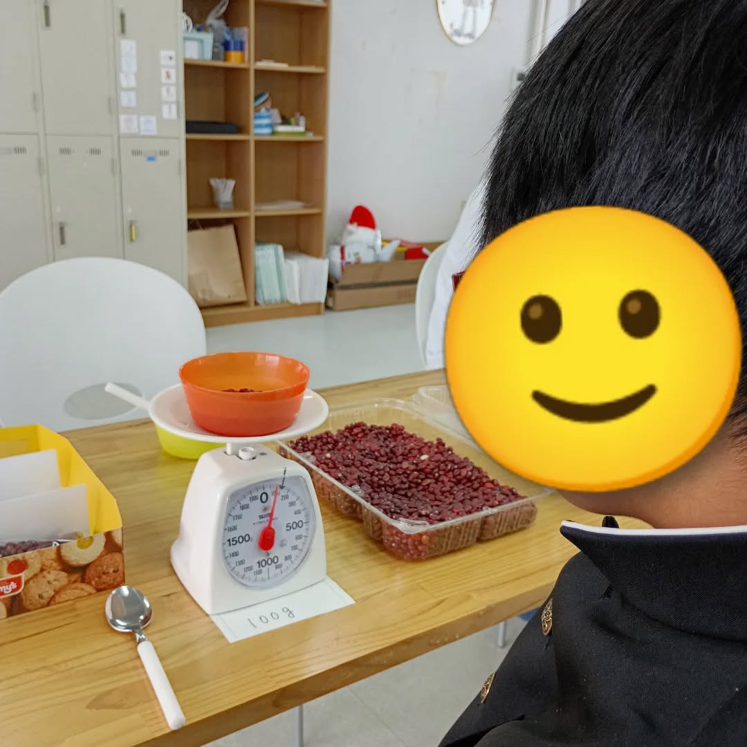 小豆を100グラムずつ計量しラッピング袋へ袋詰め作業を行いました。☺