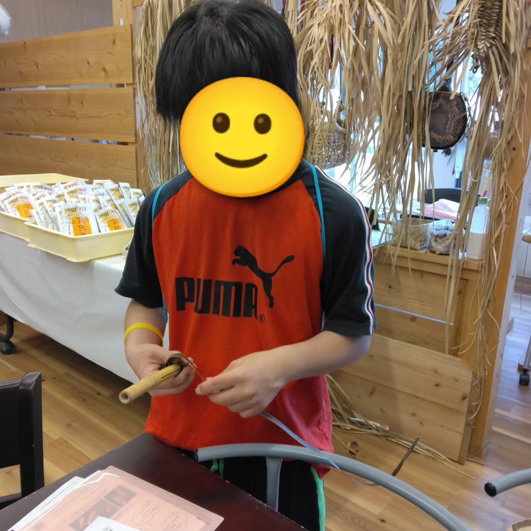 袋詰め作業やアダン葉の加工を見学・体験し、子どもたちも興味を持ってい取り組む姿が見られました。