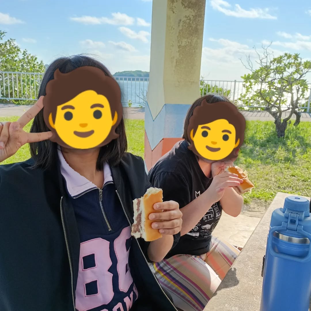 天気も良く、海辺でおやつタイム🍙🍞