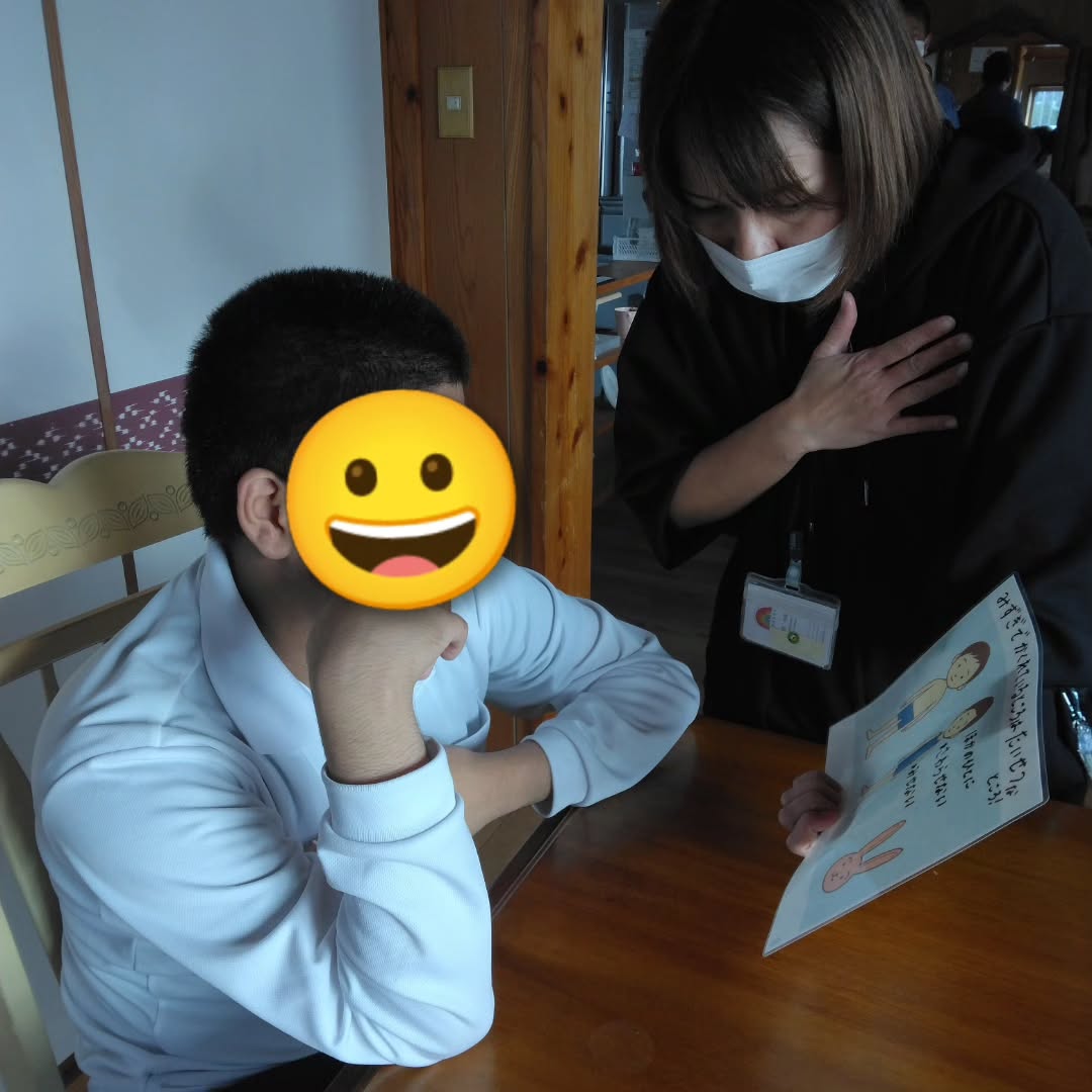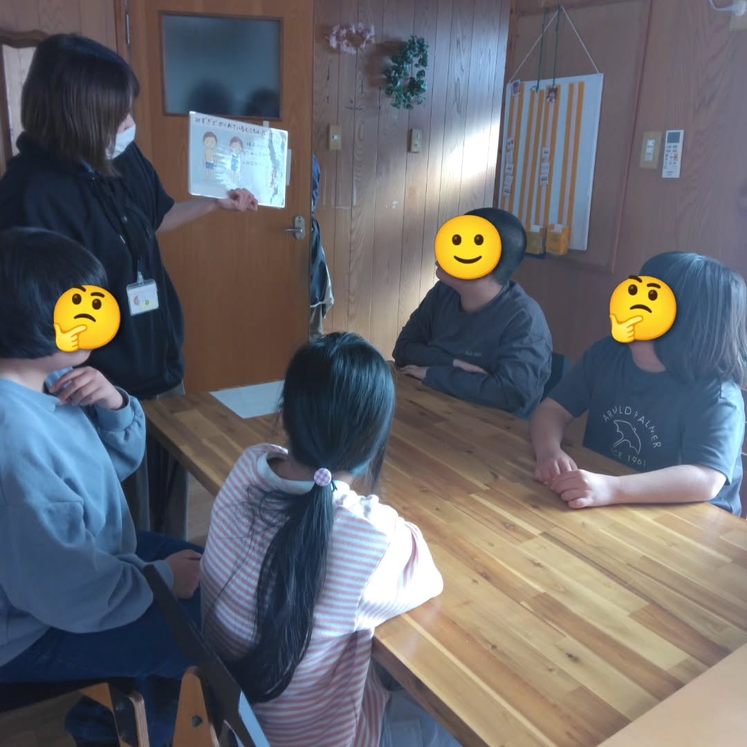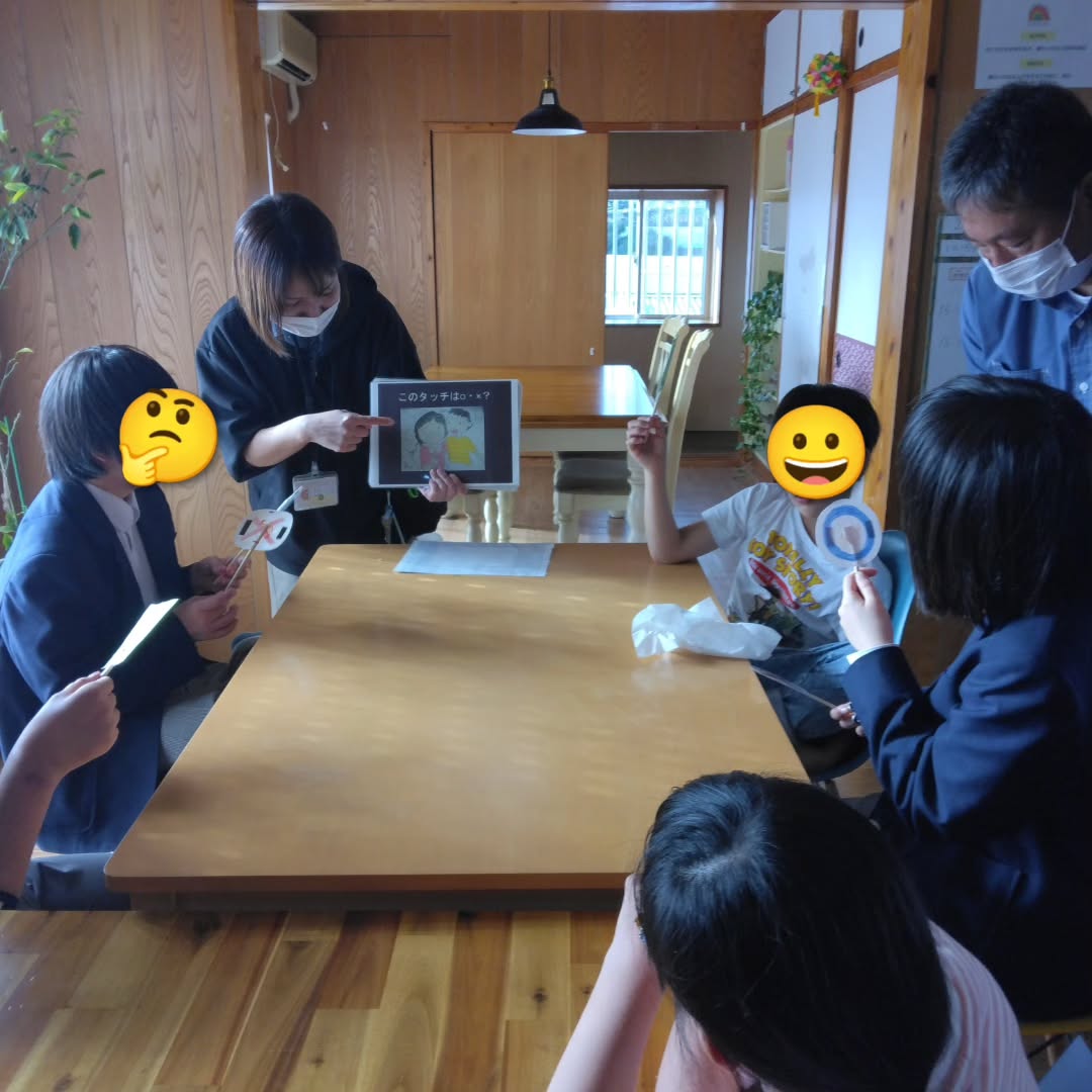 自分の身体を大切にし、相手の身体も大切にしなければいけないことを、絵カードを使って学びました。身体の大切な所を触られそうになった時に「いやだ」「やめて」「だめ」と言う練習もしました。