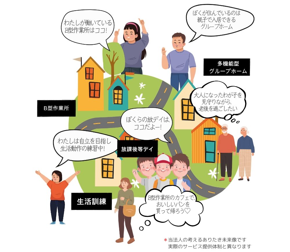 親なき後、 グループホーム等でサポートを 受けながら生活する基盤づくりをします。